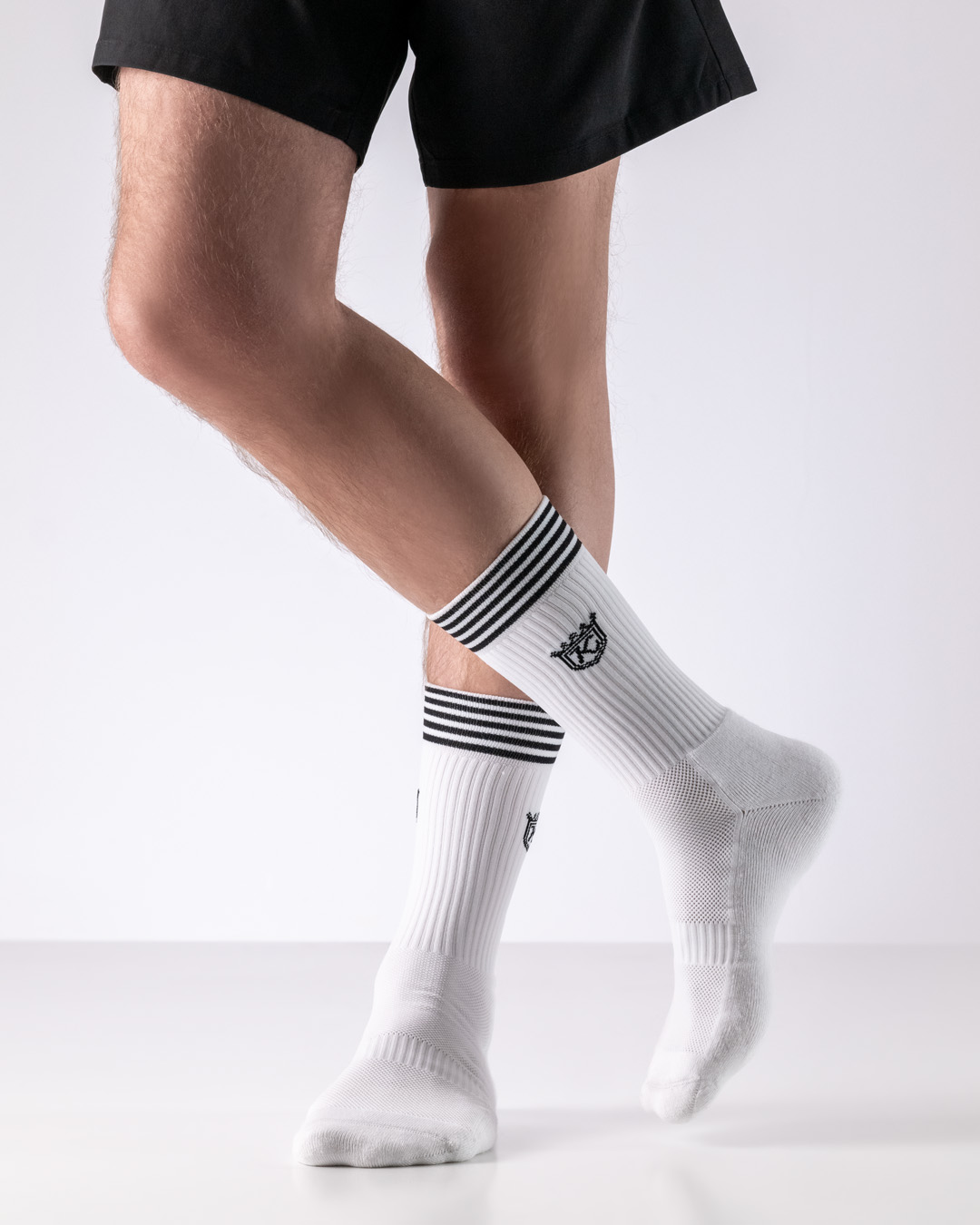 Découvrez nos nouveaux Athletic Socks – conçus pour la danse. La structure du tissu sur le dessus du pied garantit une respirabilité optimale – idéale pour les sessions intenses. Les zones renforcées au talon et à la plante du pied protègent les zones sensibles et offrent un bon amorti – pas après pas. Nous recommandons particulièrement les Athletic Socks avec nos baskets.